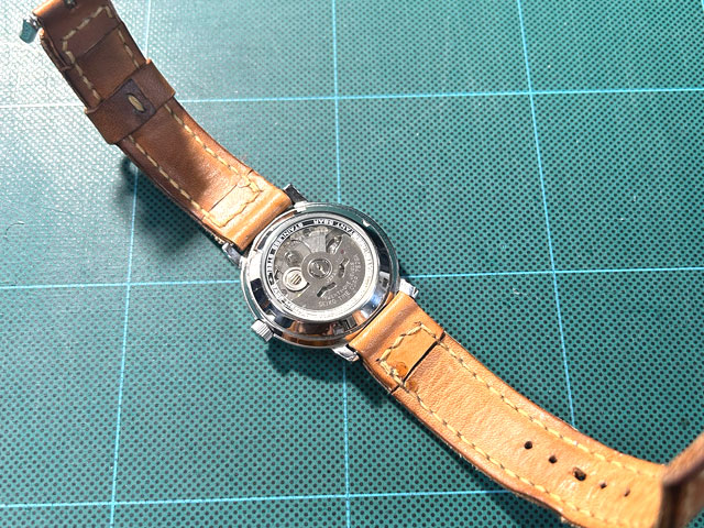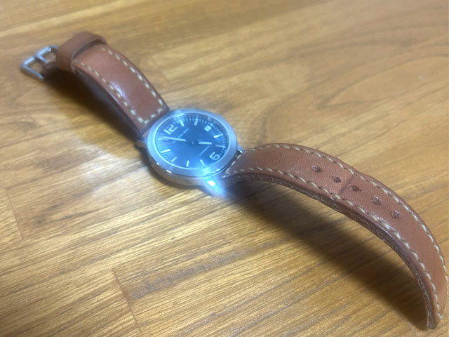 他の持ち物に合わせ、革の時計ベルトを自作して付け替えたのだ。